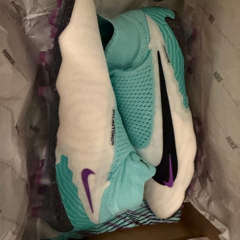 Nike Phantom Vision fotballsko i svart farge. Modellen har overdel i syntetisk materiale med strømpelignende konstruksjon rundt ankelen. Knottene er utformet for bruk på gressbane. Skoene har lav vekt og tettsittende passform til fotballspill. Passer til spillere som ønsker en strømlinjeformet fotballsko uten lisser på overdelen. Str. 41.