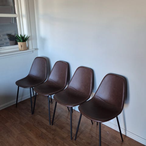 Spisebord og 4 stoler kjøpt på Jysk i november 2025. Selges pga flytting. Ny pris 7.399 kr, selges for 4.500 kr! Lite bruksmerke på en av stolene, ellers så god som ny.