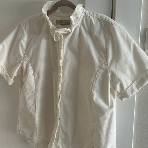 Monki skjorte i størrelse M. Skjorten er hvit/beige og laget av tykk bomull- litt dongeriaktig tykkelse og feel.
