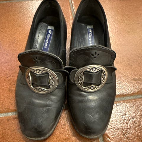 Liten hæl, høyde på hælen ca. 2,5 cm.