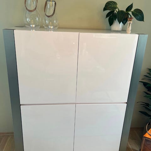 Pent brukt Idanas skjenk/vitrineskap selges på grunn av ommøblering. Skapet har praktiske skyvedører, og to små skuffer til mindre gjenstander. Perfekt til service og dekketøy, hobby eller annet.