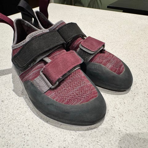 Boreal klatresko med snøring i størrelse 39,5 (EU) / 6 (UK) / 7 (USA). Skoene er i gul og svart farge med gummisåle tilpasset klatring. Overdelen er i skinn med lisser for justering av passform. Jeg har brukt dem til innendørs og utendørs klatring, buldring og generell klatretrening. Føttene mine passer dem ikke lengre.