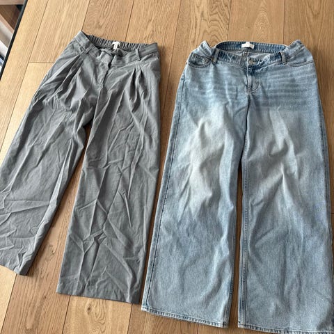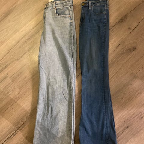 2 stk Weekday jeans i blå denim for dame. Str 24 og 25. Klassisk femlommersmodell med glidelås og knapp i livet. Lengde innside lår: str 24 er 65cm og 25 er 68cm. Pris er per stk
