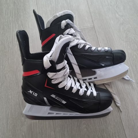 Actus X69 ishockeyskøyter i størrelse 40. Skøytene har svart overdel med lisser og ankelrem for ekstra støtte. Såle og holder er i lys plast med fastmontert stålskinne. Modellen er egnet til ishockey og generell bruk på is, for personer som passer i skostørrelse 40.