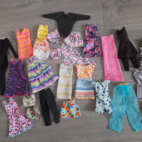Barbie og andre dukkeklær pakke, selges kun samlet for kr 300. Kan sende mot at kjøper betaler frakt Norgespakke med sporing kr 76 kommer i tillegg. Sender kun med posten eller hentes på Dokka.