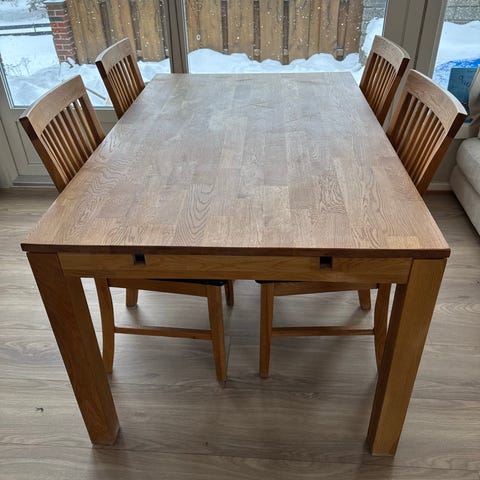 Solid kjøkkenbord selges med 2 stk stoler.