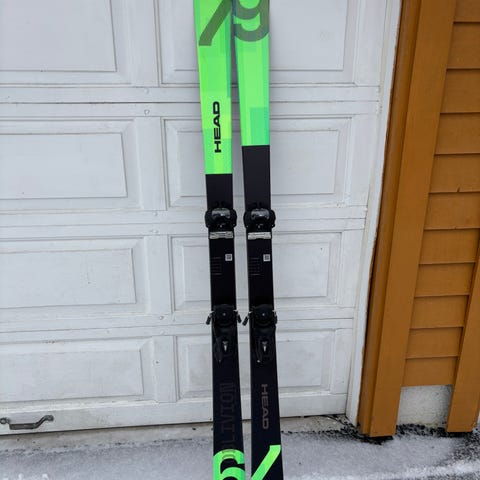 Head alpinski med binding i lengde 96 cm. Brukt av to barn. Har ikke støvlene dessverre.