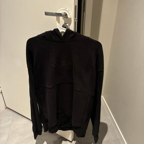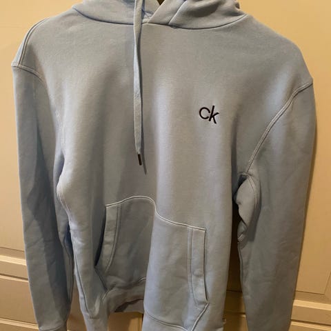 Calvin Klein hoodie i størrelse M. Klassisk modell i mørk blå farge med liten logo på brystet og CK-detalj på ermet.