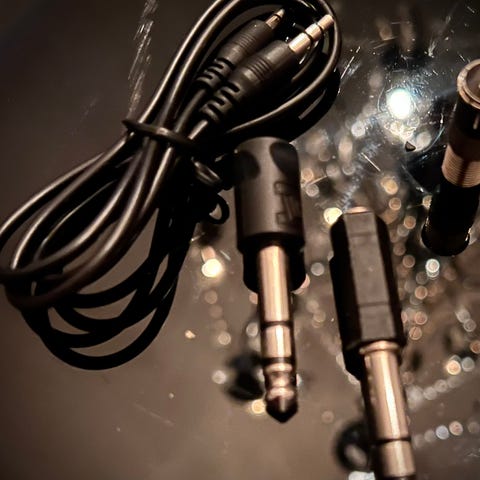 Samsung lydkabel med jack til jack-kontakter. Kabelen har to 6,3 mm jackplugger i hver ende, egnet for tilkobling av lydutstyr som forsterkere, miksere, instrumenter eller annet audioutstyr med tilsvarende tilkoblinger. Fargen er svart med metallkontakter og markeringer på pluggene for enkel identifisering. Kabelen er laget for overføring av analogt lydsignal mellom kompatible enheter.