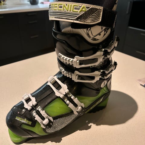 Tecnica Agent 80 alpinstøvler i svart og grønn farge. Støvlene har fire justerbare spenner og powerstrap øverst for bedre tilpasning rundt leggen. Modellen er egnet til bruk i alpinbakke og passer for brukere som ønsker en støvel med god støtte og kontroll. Yttersålen er tilpasset bruk i standard alpinbindinger.