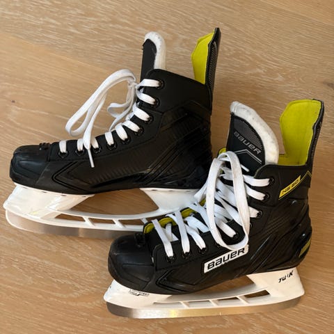 Bauer S150 skøyter for ishockey til barn. Skøytene har svart yttermateriale med kontrastfarget innside og lisser. Modellen er bygget med støtte rundt ankel og hæl for økt stabilitet på isen. Passer til bruk på isbaner og ishockeytrening for barn. Lisser kan enkelt byttes ved behov.