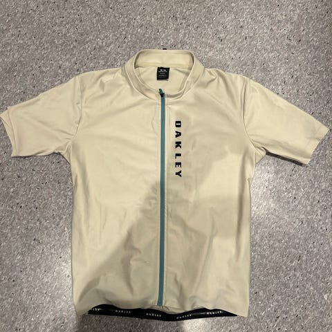 Pas Normal Studios sykkeltrøye med kort arm i beige farge. Trøyen har hel glidelås i front og elastisk avslutning nederst. Store Pas Normal Studios-logoer er plassert både foran og bak. Egnet som sykkeltrøye til landevei eller trening. Materialet fremstår som et lett og pustende syntetisk stoff som tørker raskt og gir god bevegelsesfrihet.