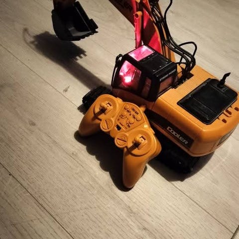 Gravemaskin/ Traktor med skuffe. Fungerer godt til lek inne eller ute i sandkassa.
