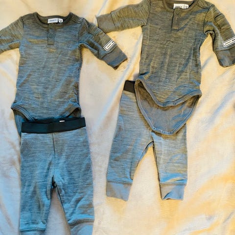 Name it ullsett for baby i str. 50, unisex. Sett med overdel og bukse i beige merinoull. Plagget er laget i myk merinoull som egner seg godt som innerste lag til baby. Passer til bruk både inne og ute, for eksempel under yttertøy på kjølige dager.