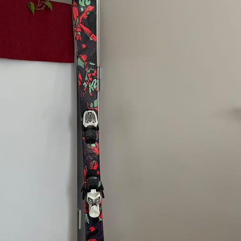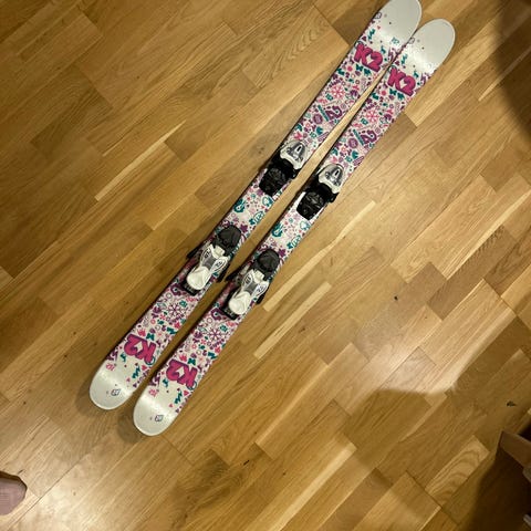 Linn Bug alpinski i lengde 124 cm. Skiene har rosa, hvitt og svart mønster. Montert med bindinger (NX7) som er justerbare. Egnet som alpinski til barn eller lettere kjørere. Passer til bruk i alpinbakke.