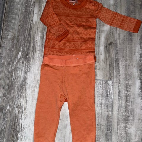 Reflex ullsett for barn i størrelse 62 cm (ca. 3 måneder). Sett med langermet trøye og longs. Farge brun. Materiale i merinoull, egnet som innerste lag. Unisex-modell som passer både jente og gutt.
