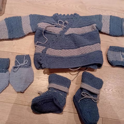 Hjemmestrikket klær til barn selges samlet for 150 kr. Det er pent brukt og i god stand. Men noe nupper må påregnes. Alt er i ull.