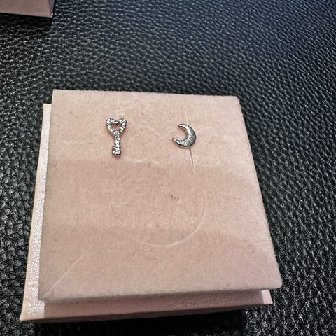 Maanesten smykke i sølv for dame. Smykket består av en tynn kjede med måneformet anheng. Hovedmaterialet er sølv. Leveres i eske fra Maanesten, som vist på bildene.