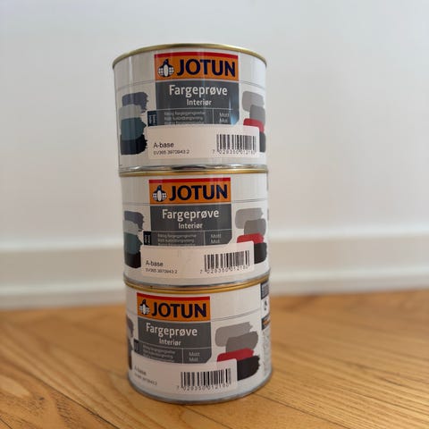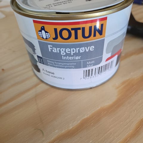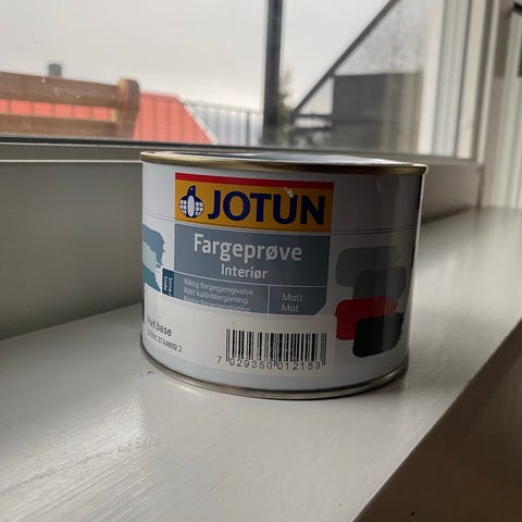 Åpnet Jotun fargeprøve interiør Subtle Green maling.