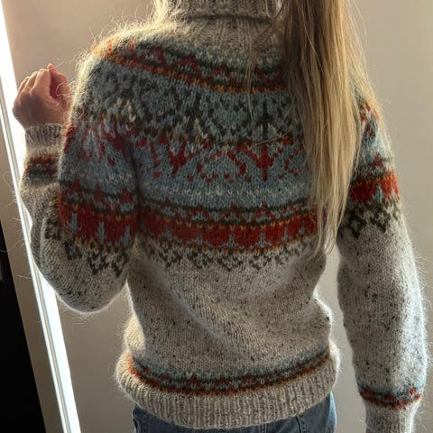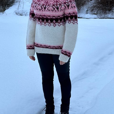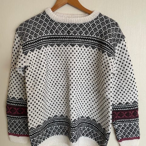 Denne råfine hjemmestrikkede Alasuq Polar genseren selges da jeg har strikket meg en ny i annen størrelse.
