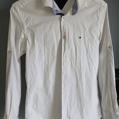 Tommy Hilfiger skjorte for dame i størrelse M. Skjorten er rosa og laget av bomull. Klassisk modell med krage, lange ermer og knappelukking foran. Lite Tommy Hilfiger-logo brodert på brystet. Passer til både hverdagsbruk og mer formelle anledninger.