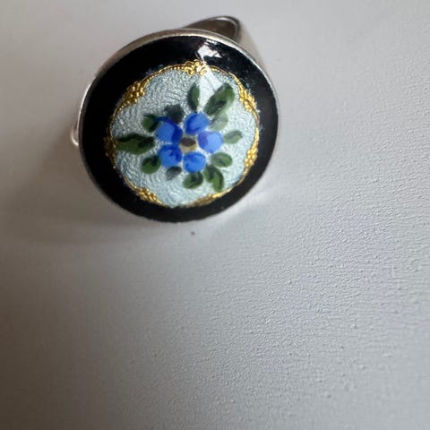 Ring , sølv med emaljen. D. inne ca .17 mm.