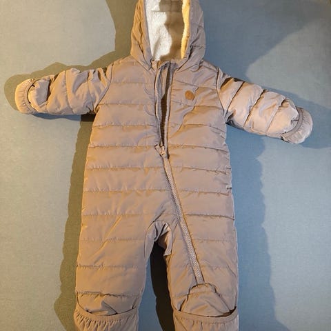 KappAhl kjeledress for barn i størrelse 68. Kjeledressen er beige og laget i polyester. Modellen er unisex og har hette samt hel glidelås foran. Passer som yttertøy til små barn i kjøligere vær.