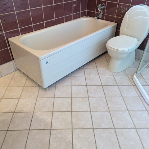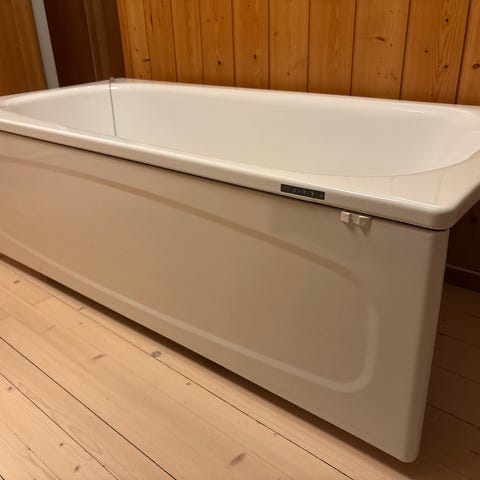 Hvitt, pent badekar med to dekksider gis bort mot henting på Kapp! Godt og gammelt, men blank og uskadet emalje. Lengde: 160 cm, bredde: 70 cm og høyde 50 cm.