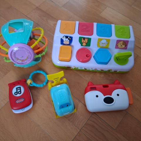 Selger en pakke med ulike leker og aktivitetsleker for små barn.
