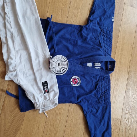 Drakt 1- vanlig drakt, godt brukt, ca. Størrelse 10-12 år, lengde på bukse 86cm, 100kr