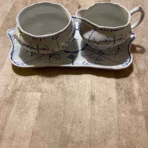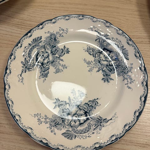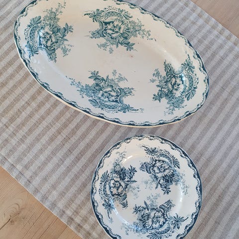 Stort, ovalt serveringsfat 40cm fra Egersunds Fayancefabrik i dekoren Rococo, produsert i perioden ca. 1901–1960