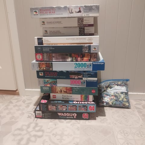 Blandet med puslespill og jeg kan ikke garantere at alt er på plass av brikker.
