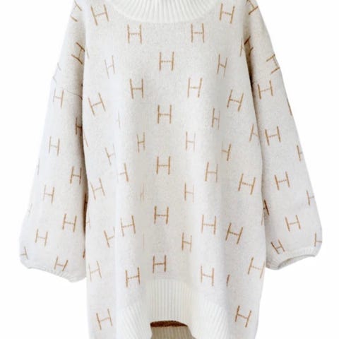 HÉST ullgenser for dame i størrelse XL. Genseren er svart med mønster av bokstaven H over hele plagget. Den har høy hals og lange ermer, og er strikket i ull som gir et mykt og varmt plagg. Passer godt til hverdagsbruk og kan kombineres med både bukse og skjørt.
