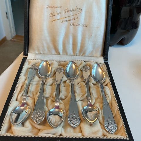 Odel spiseskjeer i 830S sølv – komplett sett (6 stk) m/originalt etui