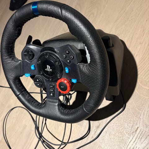 "Logitech G29 ratt og pedaler er et rattsett for bilspill på spillkonsoll og PC. Settet består av et ratt med flere knapper og dreiehjul for styring av funksjoner i spill, samt en pedalmodul med tre pedaler for gass, brems og clutch. Rattet har gummiert gripeflate og monteres på bord eller stativ med festeanordning. Pedalene står på en base som plasseres på gulvet. Egnet for bruk med racingspill og andre bilspill som støtter ratt og pedaler."
