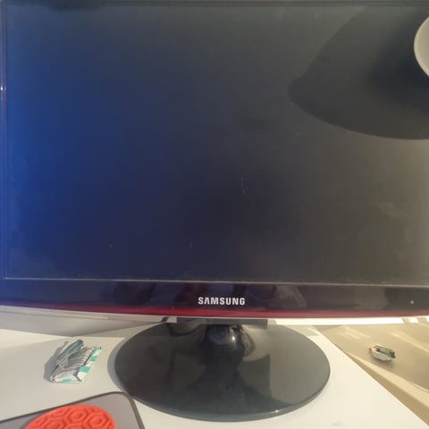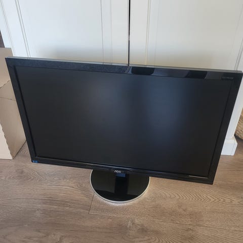 Det er litt skade på venstre side av skjermen men som en ekstra skjerm er den fremdeles grei.