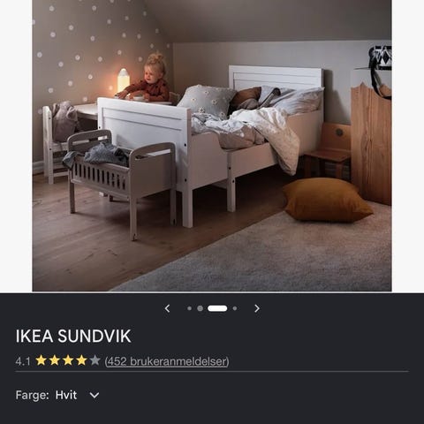Hoppekids juniorseng. Seng til barn i juniorstørrelse, egnet for overgang fra sprinkelseng til vanlig seng. Madrass kan medfølge. En solid og god seng. Noen få overfladiske bruksmerker ellers i veldig god stand.
