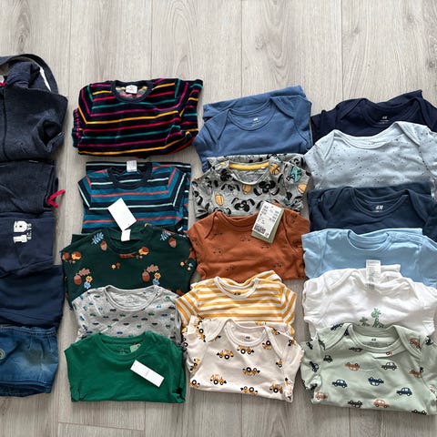 Pakken inneholder 11 body, 5 gensere, 2 pysj bukse og jeans