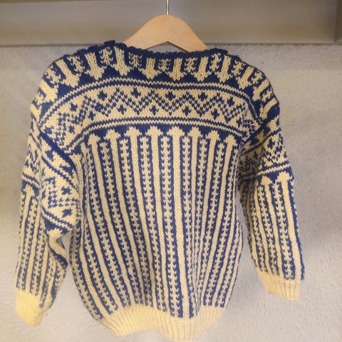 Deilig og varm håndstrikket Fana ullgenser str.10-12 år.