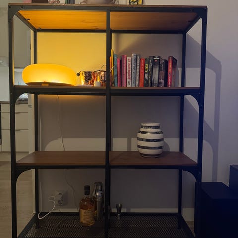 Selger en original IKEA Niklas hyllemodul med forkrommede stålrammer. Systemet ble designet av Rutger Andersson på 80-tallet.