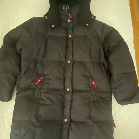 Levi's dunjakke for dame i størrelse XL. Jakken er svart og fylt med dun, med merking for RDS-sertifisert dun. Modellen har hette og lengre passform, samt store frontlommer. Ytterstoffet er laget for å holde på kroppsvarmen og bidra til å holde deg tørr i fuktig vær. Passer som varmt yttertøy i kaldere sesonger.
