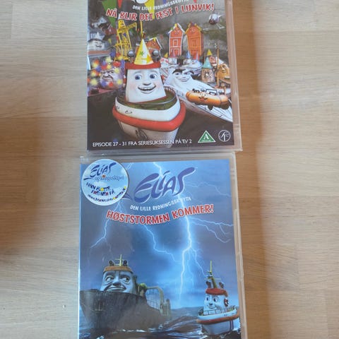 Pent brukte Elias DVD-er selges enten samlet eller hver for seg. Pris per film: 50 kr. Pris for alle samlet: 200 kr. Barnefilmer som handler om redningsskøyten Elias. Må hentes.