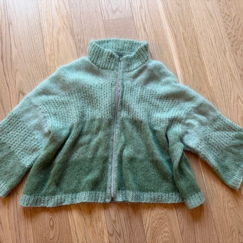 Marie Philippe cardigan for dame i størrelse XXL. Cardiganen er rød og laget av mohairull, polyester og elastan. Modellen har dyp V-hals og lukkes med knapp foran. Egner seg som ytterlag eller mellomlag over topp eller skjorte.
