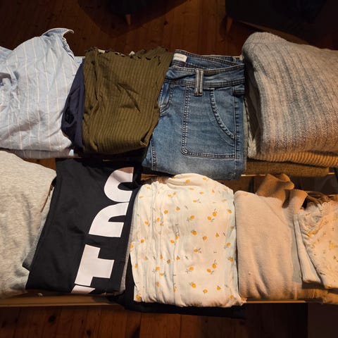 Lappen henger fortsatt på. Trøye fra Kari Traa. Skulle bytte farge, men glemte det før tiden gikk ut. Aldri brukt.