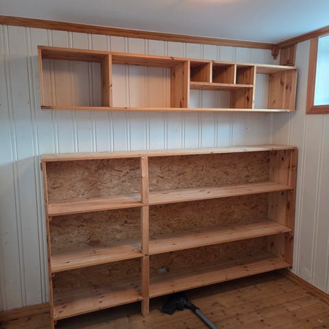Bokhylle, TV-skap og lite rundt bord gis bort.