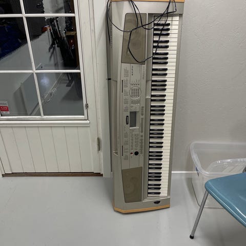 Yamaha elektrisk keyboard i svart med tilhørende X-stativ. Instrumentet har fullstørrelse tangenter og innebygde funksjoner og kontroller på toppanelet, inkludert display og ulike knapper for lyder og innstillinger. Passer til øving hjemme, musikkundervisning eller hobbybruk. Leveres som vist på bildene med stativ som kan justeres i høyden.