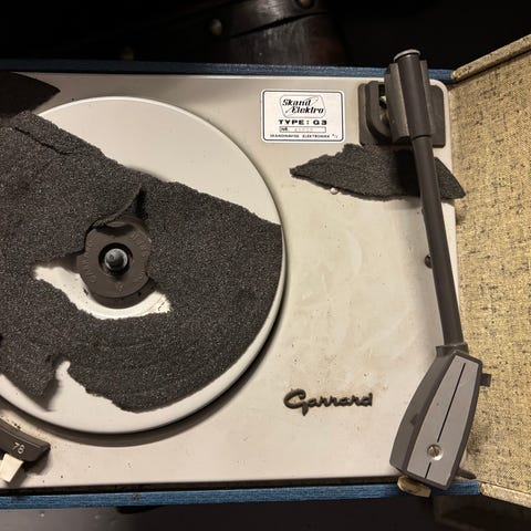 Skapet har klassisk rektangulær form med ben og frontluke som kan åpnes nedover. Inni skapet er det en innebygd platespiller med manuell arm og dreieskive. Det er også et åpent rom ved siden av platespilleren som kan brukes til oppbevaring av plater eller tilbehør.