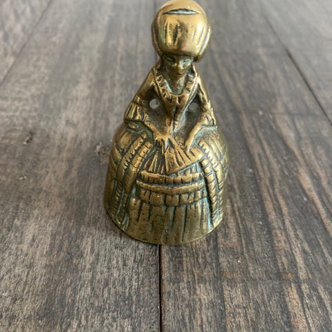 Søkeord: vintage retro bjelleklokke bjeller bjelle dekor gullfarget messingfarget messingfarge dekorasjon interiør pynt design håndtak hank retro juledekor detaljer mønster mønstret bordpynt borddekorasjon korkåpner kork flaske åpner