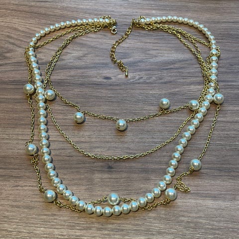 Flott, faux perlesmykke med gullfarget pent lås i tre deler.