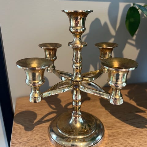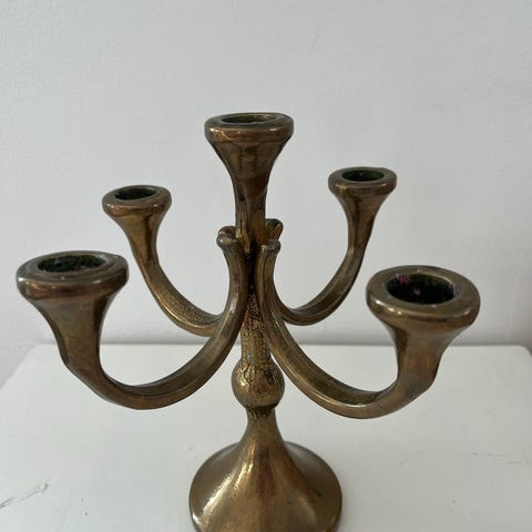 søkeord: vintage lysestaker lysholdere interiør dekor dekorasjon pynt pyntegjenstander vintage pyntegjenstand gullfarget gull messing bordpynt borddekorasjon retro tidløs skjønnhet dekorativ innredning design gammel gammeldags kandelaber femarmet femermet fem ermet armet